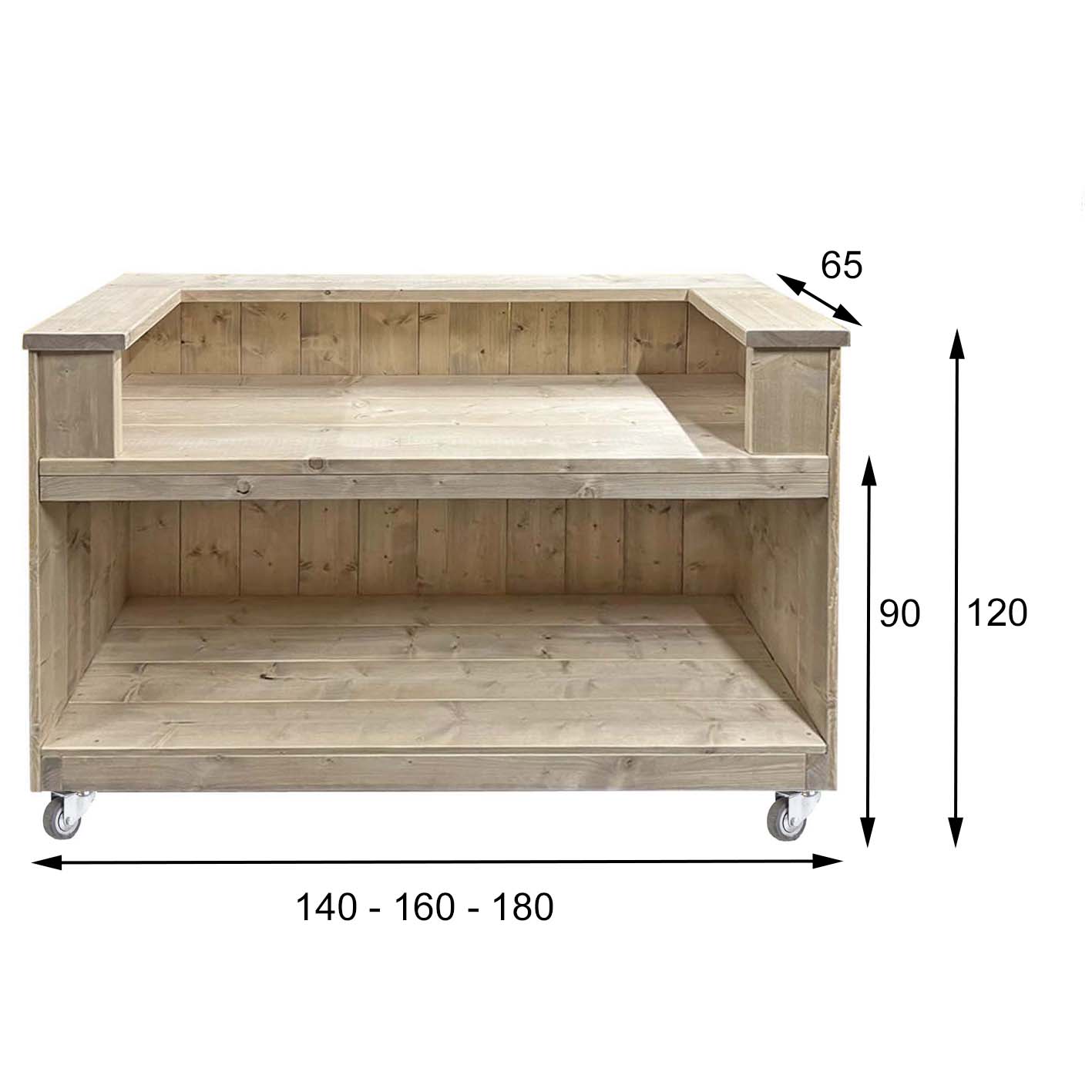 • Höhe:       90 cm  (incl. Rollen) + 30 cm Thekenaufbau