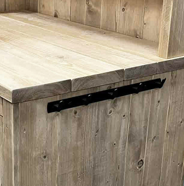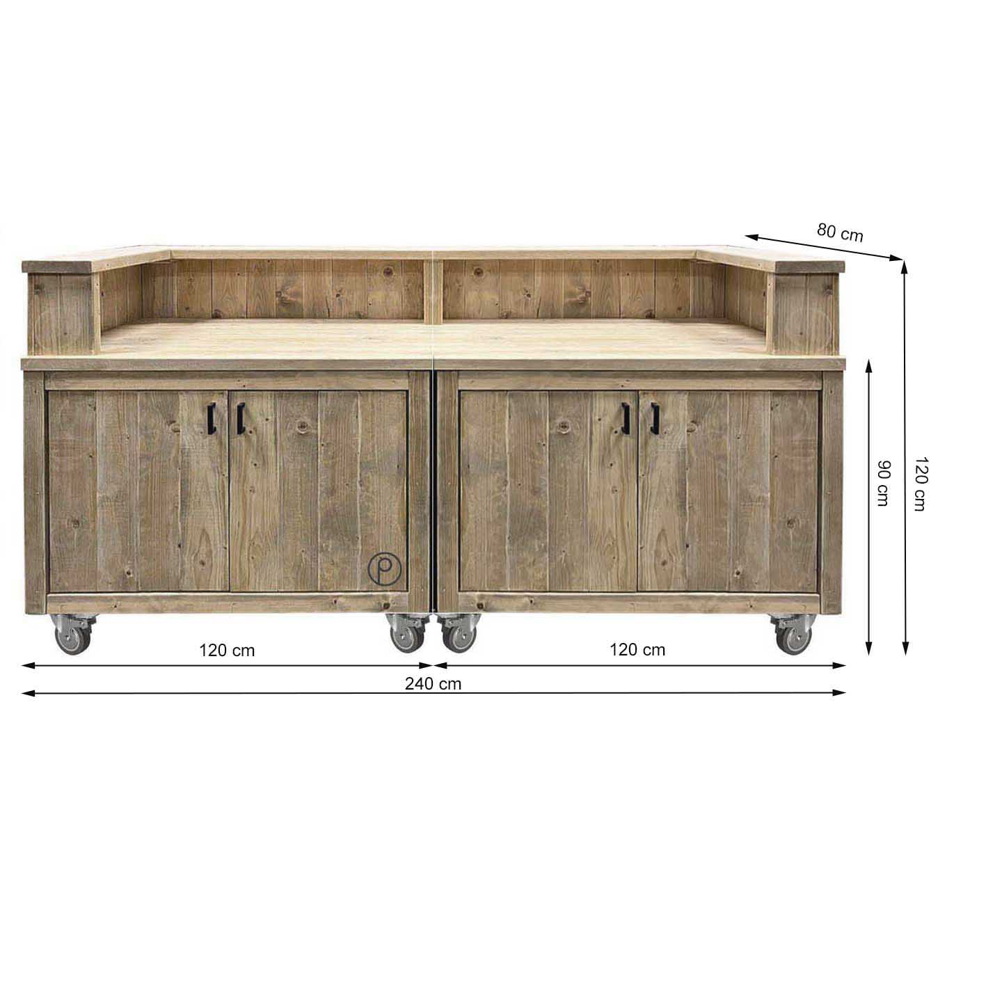 Der PERTHONE WOOD ONE ist ein exklusives Möbelstück für alle, die ihre Outdoorküche im Bauholz-Style aufwerten möchten. Dieser Grilltisch und Bar-Tresen kombiniert rustikales Design, handgefertigte Qualität und vielseitige Funktionalität – ideal für Garten, Terrasse oder professionelle BBQ-Events. Hergestellt aus massivem, wetterfestem Bauholz, überzeugt der PERTHONE WOOD ONE durch Stabilität, Langlebigkeit und eine natürliche Holzoptik. Die Oberfläche wird sorgfältig geschliffen und geölt, um optimalen Schutz gegen Sonne, Regen und Temperaturschwankungen zu gewährleisten. Mit großzügiger Arbeits- und Ablagefläche eignet sich dieses Modul als Grillstation, Tresen oder Outdoor-Bar. So kannst du Zubereitung, Servieren und gemütliches Beisammensein perfekt kombinieren. Das modulare Design ermöglicht eine Kombination mit anderen PERTHONE WOOD Modulen wie Spül-, Kochfeld- oder Kühlschrank-Modulen, sodass deine Outdoorküche individuell und funktional gestaltet werden kann. Jedes Möbelstück ist handgefertigt und ein Unikat, das Nachhaltigkeit, Qualität und exklusives Design vereint. Maße:Breite: 120 cmTiefe: 80 cmHöhe: 90 cm (incl. Rollen) bzw 124 cm incl. Rückwand.Maße, Gewicht und Farbgebung können materialbedingt minimal abweichenMaterial:Neuholz Kiefer / Fichte, Standard Auslieferung in Vintage gebeizt und holzschutz-lasiert.Auf Anfrage gerne auch unbehandelt naturEigenschaften:Massiv gebauter Grilltisch / Grillwagen mit UnterschrankArbeitsfläche & Regal aus 4 cm starken Kiefer/Fichte Bohlen2 Türen mit Softclose Scharnieren2-teiliger Innenraum mit Fachboden5-fach Edelstahl Hakenleiste4 Schwerlastrollen (davon 2 mit Feststeller)OPTIONAL: Edelstahl Arbeitsfläche und Rückwandregal Lieferzustand:Originalverpackt & NeuArtikel wird fertig montiert geliefert (Ausnahme: Rollen und Doppelhakenleiste)Dekorationen im Lieferumfang nicht enthaltenVersand:Versandkosten (nach Volumen / Gewicht) sind im jeweiligen Warenkorb ersichtlichVersand auf Inseln und ins Ausland nur auf Anfrage