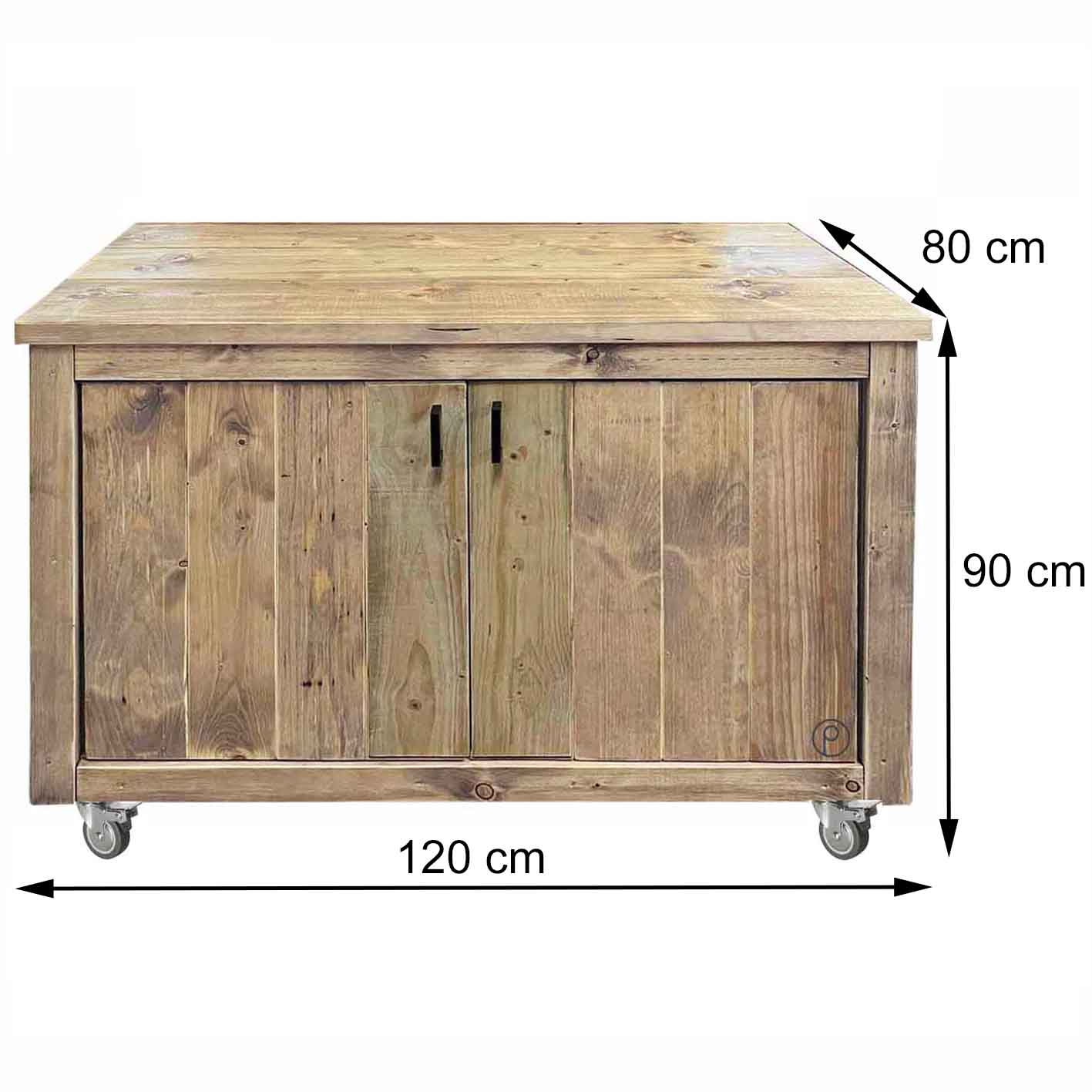 - Höhe: 90 cm (incl. Rollen) bzw 124 cm incl. Rückwand.
