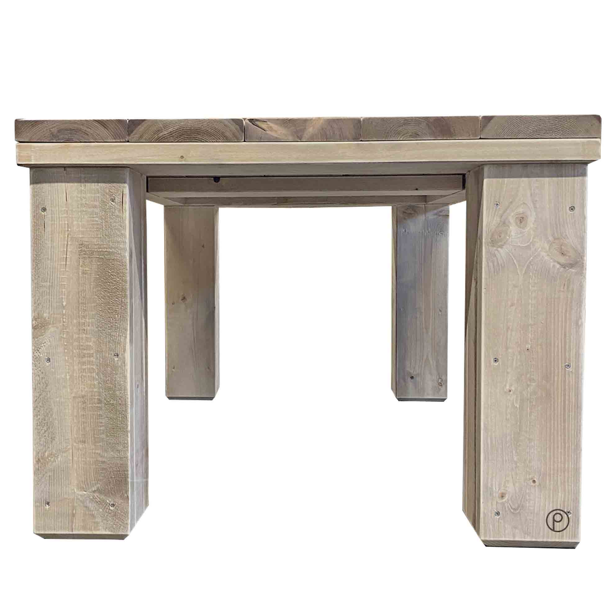 Bauholz Möbel: massiver Esstisch / Gartentisch aus Neuholz in typischem Bauholz Look