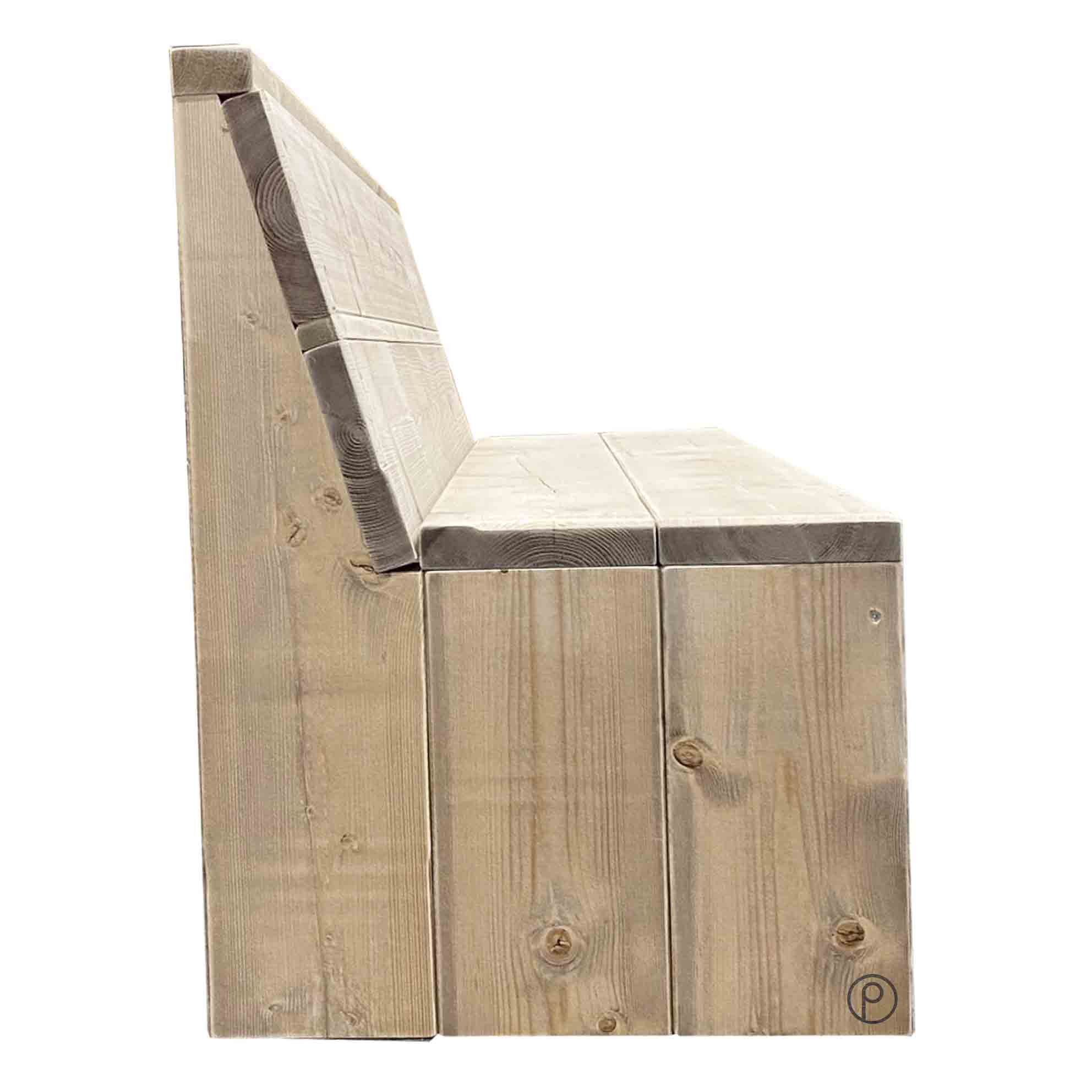 Bauholz Möbel: Massive Sitzbank aus Neuholz im typischen Bauholz Design