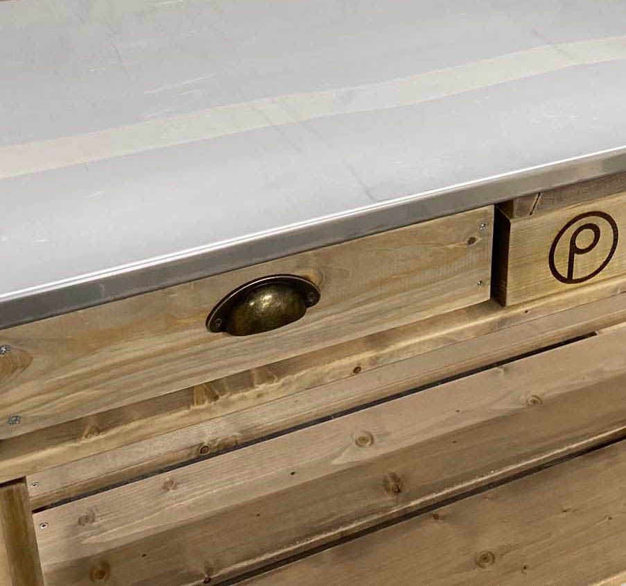 Palettenmöbel - Grilltisch, Grillwagen in Paletten Optik aus Neuholz gefertigt. Dieser Grilltisch, Grillwagen ( in 2 versch. Größen) eignet sich nicht nur als Beistelltisch neben Ihrem vorhandenen Grill,Dank der mitgelieferten Lenkrollen wird dieser Tisch aus Paletten Neuholz auch zu einem Grillwagen, leicht von A nach B zu transportieren.Für unsere Grilltische der PERTHONE Serie BASIC & PREMIUM dient er perfekt als Erweiterungs-Modul. Maße: Breite: 90 -120 cm (Bitte bei Varianten wählen) Tiefe: 80 cm Höhe: 91 cm (incl. Rollen)Maße, Gewicht und Farbgebung können materialbedingt minimal abweichen Material: Neuholz Kiefer / Fichte, Standard Auslieferung in Vintage gebeizt unbehandelt natur gerne auf AnfrageAuf Wunsch auch mit neutralen Klötzen ohne Branding Eigenschaften: Massiv gebauter Grilltisch / Grillwagen seitlich je 1 Fachboden 4 Schwerlastrollen (davon 2 mit Feststeller) Perfekt als Ergänzung zu allen Grilltischen der PERTHONE Serie OPTIONAL: Edelstahl Arbeitsfläche (nur bei Breite 120 cm) Art. 260097 Lieferzustand: Originalverpackt & Neu Artikel wird fertig montiert geliefert (Ausnahme: Rollen) Dekorationen im Lieferumfang nicht enthalten Versand:Versandkosten (nach Volumen / Gewicht) sind im jeweiligen Warenkorb ersichtlichVersand auf Inseln und ins Ausland nur auf Anfrage