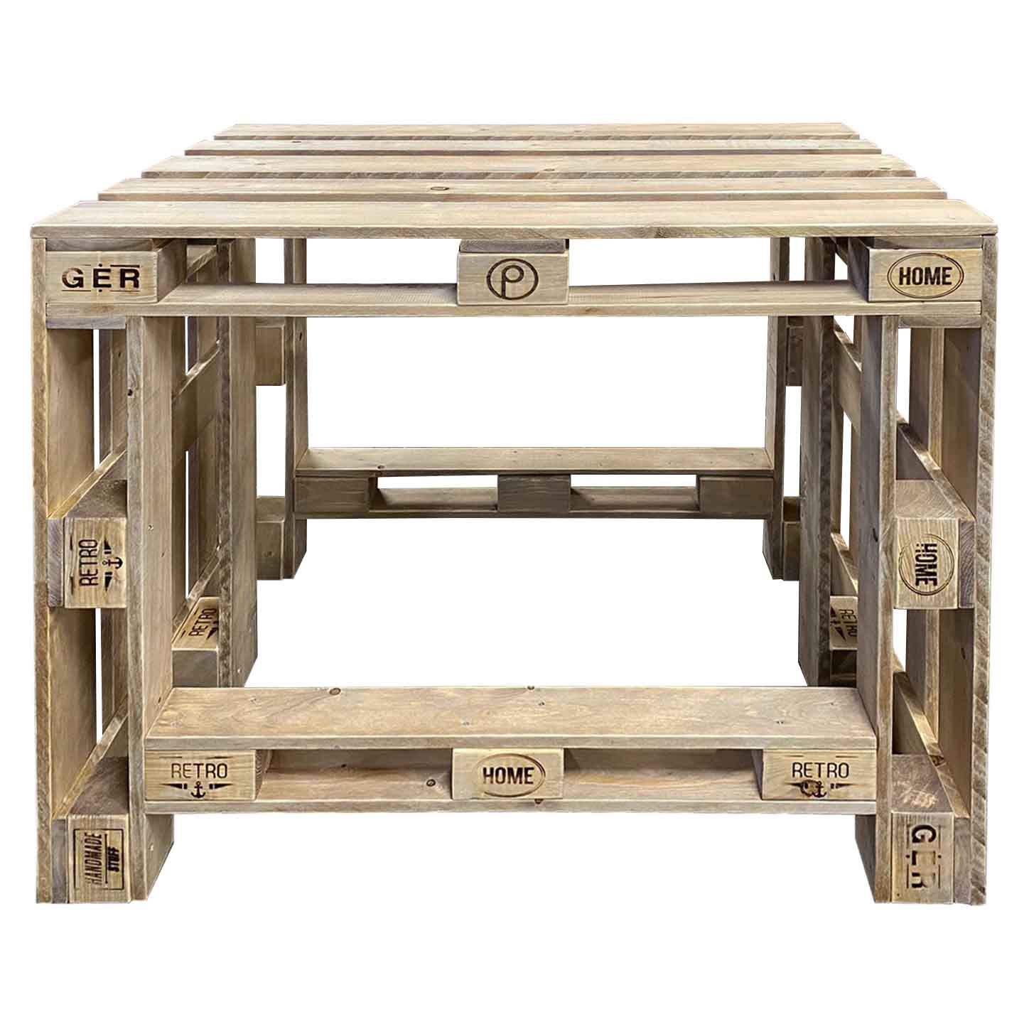Palettenmöbel: massiv gebauter Stehtisch mit 2 Bänken in typischer Paletten Optik, Neuholz Vintage gebeizt. Bestehend aus:2x Sitzbank CALABRIA Art. 2600611x Steh-Tisch CALABRIA Art. 260062 Maße: Tisch: Breite: 120 cm Tiefe: 80 cm Höhe: 105 cm Gewicht: 66 Kg Bank: Breite: 120 cm Tiefe: 47 cm Höhe: 70 cm Sitzhöhe: 70 cm Gewicht: 28 Kg (Maße, Gewicht und Farbgebung können materialbedingt minimal abweichen) Material: Neuholz Kiefer / Fichte, Standard Auslieferung in Vintage gebeiztGerne auch unbehandelt naturAuf Wunsch auch mit neutralen Klötzen ohne Branding Eigenschaften:Belastbarkeit: 200 kg Lieferzustand: Originalverpackt & Neu Artikel wird fertig montiert geliefert Dekorationen im Lieferumfang nicht enthalten Versand: Versandkosten (nach Volumen / Gewicht) sind im jeweiligen Warenkorb ersichtlich Versand auf Inseln und ins Ausland nur auf Anfrage